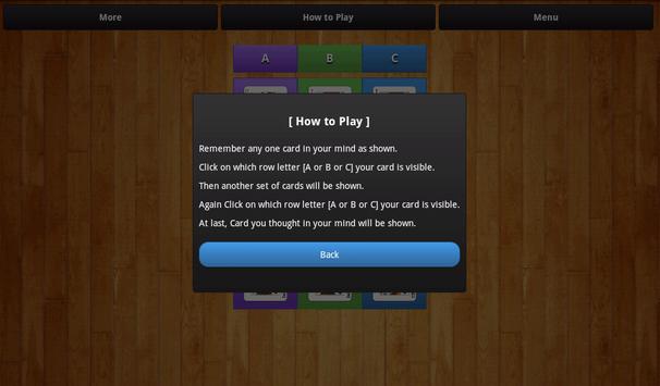 Magic Cards an amazing mind reading card game. This game will find a card from group of cards which you thought in your mind.
