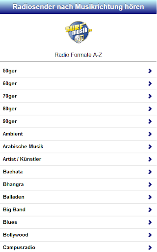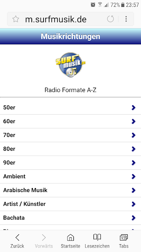 Die kostenlose Webradio App ohne Schnickschnack öffnet im Browser die mobile Webseite von Surfmusik.de.( Internetverbindung vorausgesetzt).