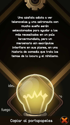 Este generador crea historias, argumentos y tramas totalmente aleatorias. Simplemente enciende la bombilla y crea todas las historias que tú quieras. Es como una tormenta de ideas en tu mano.