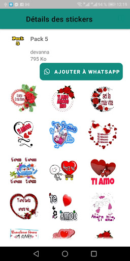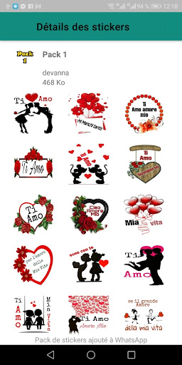 Di '(ti amo WAStickers) di Sticker qualcosa di bello e meraviglioso. Ma è vero che ci sono molti modi per esprimere il tuo amore tramite Sticker. Puoi farlo in modo semplice con un (Ti amo), (Ti adoro WAStickers), (Sono pazzo WAStickers / pazzo di te sticker) è veloce ma efficace e Frasi d'amore WAStickers Frasi San Valentino sticker.