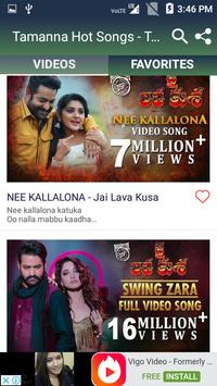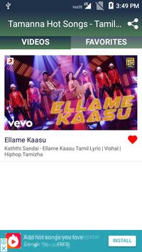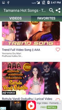 The App contains various songs of popular South Indian Actress Tamanna Bhatia, including -