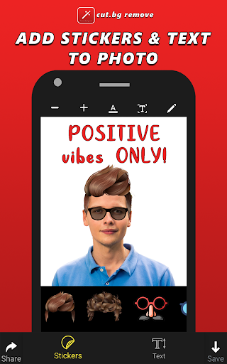 Do you want to erase photo background and want to remove unwanted objects from photo or you want to add text and stickers to your photo then cut.bg remove is the app you are looking for. Erase image in couple of seconds with background eraser. With cut.bg remove you just need to touch the area that you want to erase & auto eraser tool will do the rest of the work for you. A very handy Photo background eraser app for android. You can also manually erase photos background by using eraser. Magic eraser is the tool used to get a transparent background. Remove BG of any photo in seconds using photo background remover. cut.bg remove is a photo editor app through which you can change background of photo using background changer feature. Magic auto selection helps you detect the area you want to remove. You can select an image from your gallery to edit or you can instantly take a picture using camera & start editing it. By using cut.bg remove you can get a transparent background of an image in PNG or JPG format with background remover. cut.bg remove also provides photo stickers functionality to enhance the beauty of your photo. Totally FREE emoji and stickers are placed in cut.bg remove. Photo Sticker Editor is a bonus you will get. cut.bg remove is also an ultimate Stickers app which have a huge collection of stickers. Stickers for photos adds additional fun in the images. You can also Add Text on Photos. cut.bg remove is a free photo text edit app. Insert text in photos in seconds and give your text a beautiful look by changing fonts, text color & size. If you get a memorable picture of yours but some object in your picture is spoiling your whole photo then you can easily remove that object with single click in cut.bg remove. Multiple Cut Out and Eraser tools provides a fast and easy way to change photos backgrounds using background eraser. Picture stickers involves free photo stickers. You can easily add stickers on picture by sticker app. cut.bg remove use AI methodology to do the hard work for you. You need to provide any image & then you can cut around the foreground, and Auto Remove Background will let you save an edited image with a transparent background. Photo background changer, Picture cleaner, image remover for white background are the main features which let you make a clean background & transparent background in seconds. cut.bg remove is an ultimate BG Remover which will allow you to do zoom in-out to an image while removing an object. Just use magic eraser tool to get an accurate stamp to use anywhere. You do not need to have a photo editing skills to make a background transparent. Background changer feature helps you change background or add background with attractive wallpapers. cut.bg remove is a lightweight photo eraser with photo changer option too.