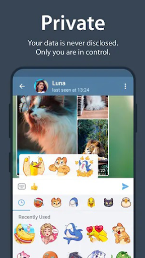 ✔ Messenger Tele has powerful photo and video editing tools and an open sticker/GIF platform to cater to all your expressive needs.