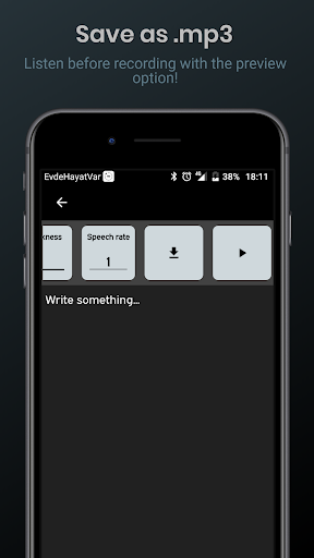 It may be the most useful tool for you. You can use it as a voicemail in your youtube videos, or as a voicemail in your advertising videos, or share the sounds you create with your friends. You can use it wherever a human voice is required. Type and speak. Convert text to voice with best features, Download to your device, share. Save your sentences in mp3 format as Sound files to your device - your sound settings are applied!