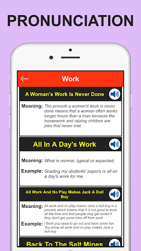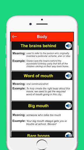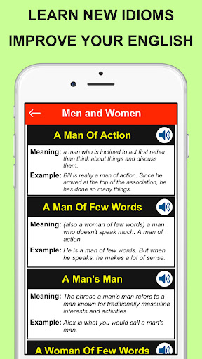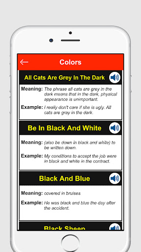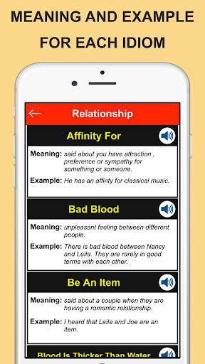 English language is an ocean of words and techniques so you need to start learning English from the basics. Therefore, we have collected idioms, phrases, phrasal verbs and proverbs to help you learn and memorize idiom dictionary by leaps and bounds. Learning English has become essential because it helps to communicate with people from all over the world. So, why not take a step forward to learn and improve common expressions with the English idioms app.