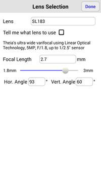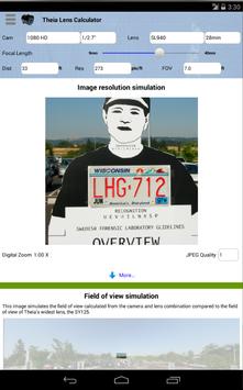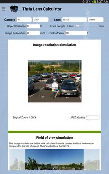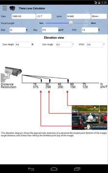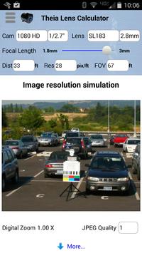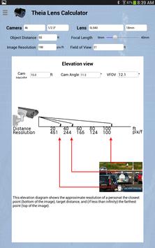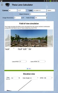 Theia's lens calculator can be used to help you understand the level of detail and field of view that can be seen with different lens and camera combinations. This app is targeted at security camera installers and integrators.