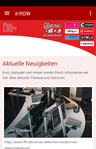 Jetzt gibt es it-ROW als offizielle App für's Smartphone! Alle Neuigkeiten, Fotos, Veranstaltungen und Termine landen so direkt in der Hosentasche. Wann immer es etwas Neues gibt, klingelt's auf dem Smartphone. Und weil ein Smartphone eben auch ein Telefon ist, lässt sich per Knopfdruck gleich eine Verbindung herstellen. Die it-ROW-App sorgt immer für den direkten Draht.