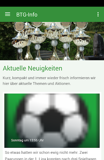 Jetzt gibt es BTG-Info als offizielle App für's Smartphone! Alle Neuigkeiten, Fotos, Veranstaltungen und Termine landen so direkt in der Hosentasche. Wann immer es etwas Neues gibt, klingelt's auf dem Smartphone. Und weil ein Smartphone eben auch ein Telefon ist, lässt sich per Knopfdruck gleich eine Verbindung herstellen. Die BTG-Info-App sorgt immer für den direkten Draht.