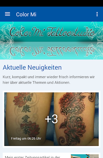 Ganz oder gar nicht: Beim Tattoo gibt‘s keine halben Sachen. Deshalb gibt es das Color Mi Tattoostudio jetzt als offizielle App für's Smartphone! Alle Neuigkeiten, Fotos, Veranstaltungen und Termine landen so direkt in der Hosentasche. Wann immer es etwas aus der Welt der Hautgeschichten gibt, klingelt's auf dem Smartphone. Und weil ein Smartphone eben auch ein Telefon ist, lässt sich per Knopfdruck gleich eine Verbindung herstellen. Die Color Mi-App sorgt immer für den direkten Draht.