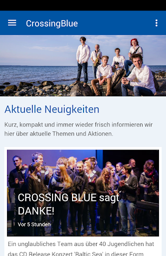 Jetzt gibt es die offizielle Applikation von Crossing Blue für's Smartphone! Alle Neuigkeiten, Fotos, Veranstaltungen und Termine landen so direkt bei dir. Auf diese Weise bleibst du immer über aktuelle Auftritte und Projekte auf dem laufenden - direkt nach der Veröffentlichung.