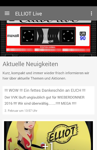 Hallo liebe Elliot-live Fans. Holt Euch unsere neue Elliot-live App. Hiermit seid ihr immer App-to-Date. Ob news zur Band, Hintergründe, Veranstaltungen usw. Mit unserer App verpasst ihr keinen Termin mehr. Ihr habt Fragen oder Anregungen? Auch das ist nun kein Problem mehr. Mit unserer App habt ihr den direkten Draht zu uns. Einfach downloaden und Spaß haben...