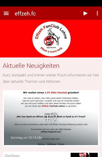 من الآن فصاعدا effzeh.fc متاح أخيرا كتطبيق!تعرف في كل مكان في العالم عن الأخبار والصور والمواعيد والأحداث.بفضل دفع الإخطارات، تأتي كل أنباء على الفور على الهاتف الذكي.ولأن الأجهزة المحمولة غير ملونة للغاية، يمكن تأسيسها مباشرة عبر هذا التطبيق.مع هذا التطبيق دائما تأكد من الاتصال المباشر.