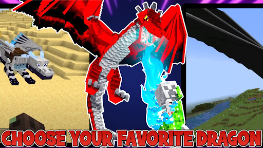New Minecraft Dragons mod will add many different dragons: hell dragon, lightning dragon, cave dragon, forest dragon, sand dragon, lava dragon, ice dragon, ghost dragon, hydra. They can drop valuable crafting resources, create armor and a saddle for your pet and enjoy flying in the pixel world of Minecraft PE.
