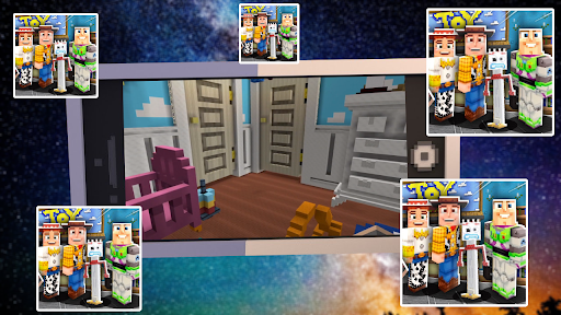 You will immerse yourself in a world that will make you feel like a tiny toy, you will become a hero on a map that enlarges all the pieces of furniture around you: TV, table, chairs, all furniture is enlarged several times. This is a challenge that will test your parkour skills, because when you are your normal size you have no problem sitting on a chair or getting food out of the fridge. This toy story will introduce you to new toy friends. These cool mobs, just like you, are tiny inhabitants of the world, only each of them is unique, for example Sheriff Woody, cosmonaut buzz, several alien inhabitants and a live fork! Opening the doors to the house, you will find yourself visiting Andy Davis. Meet new mobs, avoid dangers and enjoy playing with toys. Explore, craft items that will help you colonize the territory. Bonus skins of Woody, Buzz and a female version of Buzz are available. There are also alien skins.