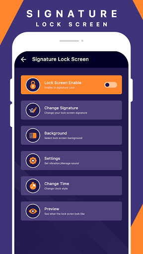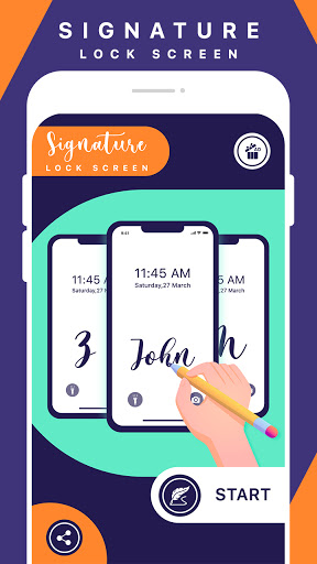 Signature Lock Screen application has feature of creating new Signature, change color of Signature, change background theme of Signature