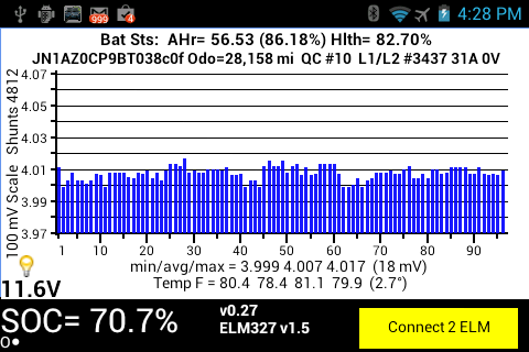 Although Leaf Spy Lite provides an easy and inexpensive way to learn more about your Leaf's battery it also serves as a way to verify if you have a working system before purchasing the full version of the app (Leaf Spy) which display much more information about your Leaf or the Leaf Spy Pro version that adds a number of service type functions.