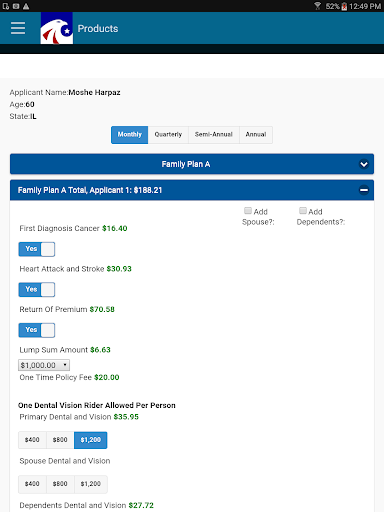 Allows United National Life insurance agents to quickly generate quotes for customers.