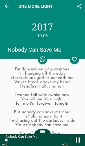 Are you a big fan of Linkin Park and his songs ? Then this app is a perfect choice for you . This Lyrics of Linkin Park android app contains all lyrics of this talented singer and they are sorted by his albums. You can easily browse albums, songs and lyrics using our app app. You can even listen to all Linkin Park songs’ on your song album!