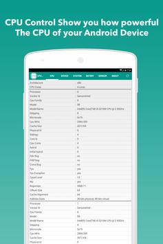 CPU Control Dash show you how your android CPU device is inside an elegant Material Design interface, it lists all your (smartphone or tablet) CPU info, such as processor, architecture, core, model, device, brand, board, screen resolution, ram, storage, network type, android version, API level, kernel, Build ID, CPU, Root Acces, control etc.. it also computes the processor's current frequency at runtime