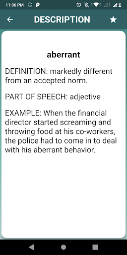 Ultimate GRE Word List is an app, specially crafted for GRE aspiring students. This app is a great tool while preparing for the examination. We have added 1600 high-frequency GRE words with their meaning in the list displayed at the home screen. The meanings are hidden at first and can be seen when the word is clicked on. This enables a flashcard like model for revising. The user can also add words to favorite for easier future access and quick revision strategies. Our team has also added a full description page for each word which includes the word's definition, which part of speech it belongs to (verb, adjective, noun), and an example where the word is used.