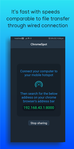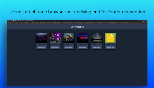 Save your time and internet by using Chromespot. This app requires zero mobile data and has blazing fast transfer speeds. Just switch on your mobile’s hotspot and open chrome on the receiving end and complete your transfer.