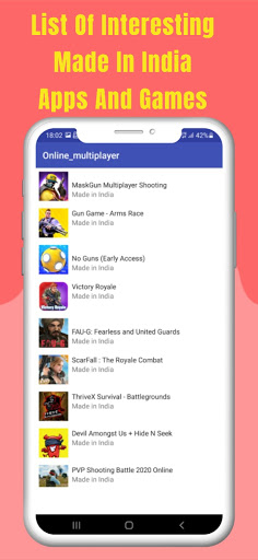 There are multiple categories in "Indian Apps and games" like multiplayer games, 2d games, 3d games, puzzle, horror games and in app list there is photo editor apps, video editor, media player, social media apps, books, business, entertainment and many more this app is just like "Indian Play Store