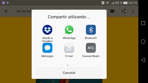 - Puedes compartir las imagenes por el medio que tengas instalado, facebook, whatsapp, email, etc.