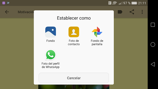 - Puedes descargar las imagenes con la opción establecer imagen como... y sin hacer más la tendrás ya en tu galería