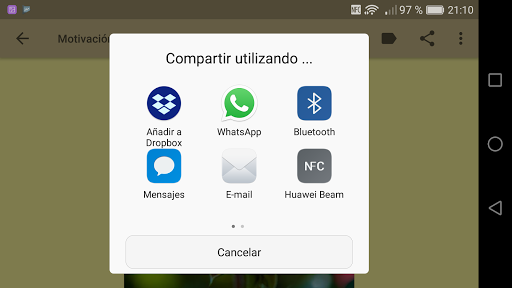 - Puedes compartir las imagenes por el medio que tengas instalado, facebook, whatsapp, email, etc