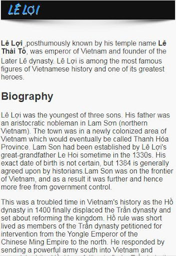 Welcome friends in this app, this app has given you the biography of the great men of Vietnam. Through this App most populer, the biographies of innovators, scientists, players, writers and thinkers, politicians etc. have been given. Learn about their work and achievements in this app. Now it's totally free and offline also user friendly.