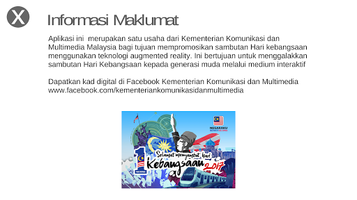Kementerian Komunikasi dan Multimedia Malaysia bagi tujuan mempromosikan sambutan Hari Kebangsaan menggunakan teknologi augmented reality. Ini bertujuan untuk menggalakkan sambutan Hari Kebangsaan kepada generasi muda melalui medium interaktif.