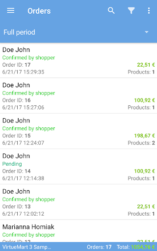 Keep track of every change in your online store, collaborate with customers and keep your finger on the pulse of the events! With the help of VirtueMart Mobile Assistant on your Android Phone there is no need to carry printed spreadsheets or a laptop. All you need is a VirtueMart Store Assistant on your Android Mobile Phone!