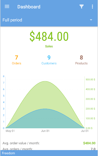 - quick filters to check your orders and customers today/week/month and so on