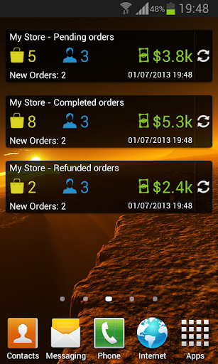 - homescreen widget showing your store daily progress - number of new customers, orders and total sales