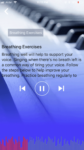 Voice & Sing vocal warm up kit was created for singers, actors, voiceover artists, public speakers and performers. It is for anyone who requires warming up before using their voice. This is one of the few apps available to simulate sitting at the piano with a vocal coach. Unlike other apps & audio lessons, Voice and Sing is a vocal coach in your pocket, train anywhere at anytime. The specifically designed breathing exercises are to help open your diaphragm and lung capacity. You can then choose your vocal range from a selection of vocal pitches to suit your particular voice. Voice & Sing also offers a variety of vocal exercises and demonstrations as well as a Speaking Voice Kit. You control every session, no musical knowledge required! Whether beginner or master, student or teacher, Voice and Sing is a simple to use warm up kit, for all your Vocal needs!