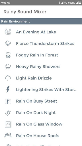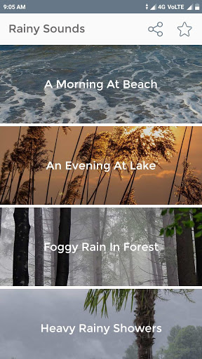 Let's create your own rainy environment. Use this app which contains an amazing collection of rain sounds to get relaxing sleep. This is the best useful app if you are in rainy mood or love natural sounds. RainyMood - Natural Sounds for Relaxing Sleep app has superb and carefully selected relaxing rain sounds within various environment such as: