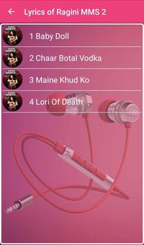''Ragini MMS 2'' is the Songs Lyrics applications that is suitable in your phone and it's easy to use and free for you. Everything on this application is intended only for entertainment. Just search for any Movie Songs Lyrics and you're getting all the songs from Ragini MMS 2, that you're looking for.