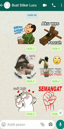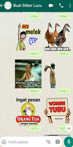 สติ๊กเกอร์ Abamar, Arep Guyu Kok Wedi Lemu, Noisy Lu, Wayahe เรามาดูแล NKRI, I RA Popo, อรุณสวัสดิ์ตอนเช้าและการขายของเหลว, Mijit วิญญาณของ Kaka, Rapelan แรงจูงใจ, Muke Gile , Gombal, Lonely, Lemes, Bete, รู้, เย็น, ขึ้นไปที่ Lodeh, SE7, Paan Ci, Smart, ดังนั้นทุกคนรู้ว่าไม่มีขนุน, กอด, โสเภณีน้ำส้มสายชูโหว่, ขอขอบคุณสำหรับการบอก, ไม่มีแก้ว, ไม่มี พยายาม ... อย่าคาดหวัง NYI-MAX