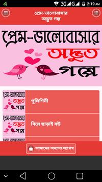 Since the dawn of human civilization, man has been always fond of love. As a part of this curiosity, he likes romantic stories. He wants to know the Best Love story. Those who want to know Prem valobasar golpo or kahini in Bangla are welcomed to install this app.