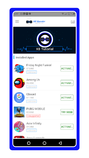 X8 speeder app increase the speed of your games🎮 and apps eight times without any expenditure. This tool is very helpful for the gamers, because its incredible features can change your loved game and make it easier for you. X8 speeder application will not only increase your speed, but also lets you add extra points to the app if you play a speed game. Everything is too simple and fast. You just need to select the game you want to speed up💨 or slow down, then tap the "Activate" button next to it.