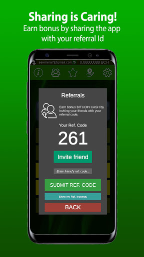 By using Referral program, you can earn bonus BCH for inviting friends or colleagues,