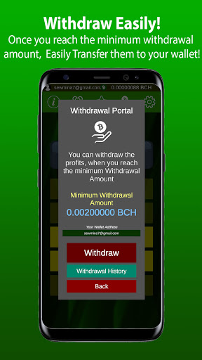 Once you reach the withdrawal limit, you can transfer the mined BCH to your personal portfolio.