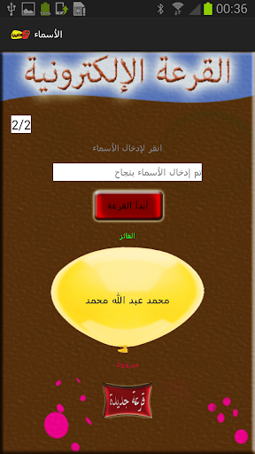 القرعة الإلكترونية برنامج لعمل القرعة وأختيار الرابح سواء بين أسماء أو أرقام البرنامج قد يخدم للمعلمين ومعلمي الحلقات أوفي الرحلات والمسابقات الثقافية التي قد تحتاج فيها إلى عمل قرعة بين المشاركين أو الطلاب سواء بأسمائهم أو أرقامهم.