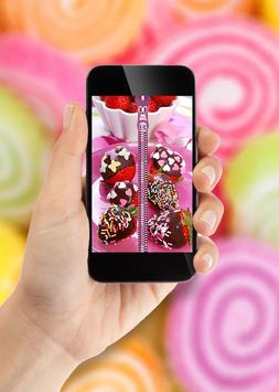 If you are true candy lover, you're gonna adoooore candy zipper lock screen app! Throw back the look at candy lock screen wallpaper and you will have instant need for sweets. The candy lock screen is the popular lock app that will decorate your screen in a really cute manner. Bonbons, lollipops, cupcakes, chocolate and strawberries are sweets that if you see once, you want to eat them. All that you can have as device background like a sweet candy zipper lock.