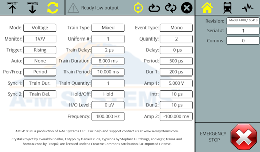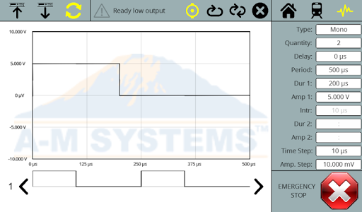 The Model 4100 Programmable Isolated High-Powered Stimulator from A-M Systems is a single channel programmable stimulator designed for a wide variety of applications, including field stimulation. It is highly flexible, being capable of simultaneously delivering up trains comprised of monophasic, biphasic, or ramped waveforms.