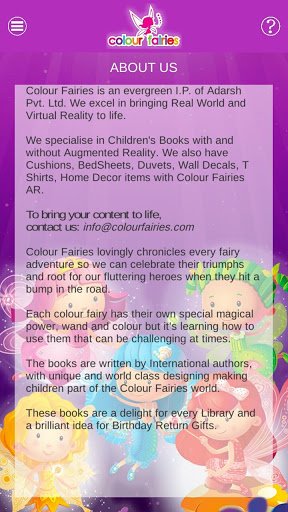 We bring a 4D app with exclusive Colour Fairies colouring and story books together. It helps children come closer to books. It engages children and motivates them to play and read.