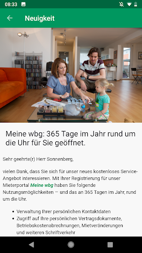 Mit unserem neuen Online-Service für Mieter der wbg Nürnberg können Sie direkt, unkompliziert und zu jeder Zeit mit uns in Kontakt treten. Über Ihr Smartphone oder Ihr Tablet können Sie wichtige Unterlagen zu Ihrem Mietverhältnis einsehen und erhalten einen Überblick über Ihre Mietverträge – egal ob es sich um Wohnungs-, Stellplatz-, Garagen- oder Gartenmietverträge handelt.