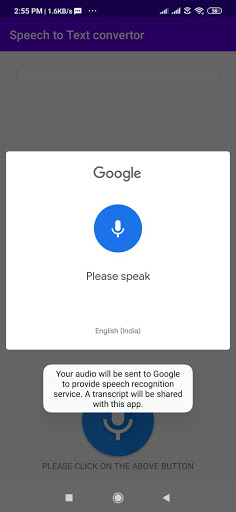 Voice to text converter- Audio to Text converter is a simple app and user friendly interface. The text will appears after you done speaking text and it is a Voice typing