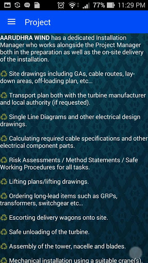 AARUDHRA WIND ENERGY was established on 2012 : AWE has an ISO 9001:2008 ( QMS ) and ISO 14001:2004 ( EMS) certified organization, AWC team have 20 Years Experience in wind turbine installation and maintenance activities in different makes & capacities form 55kw to 2.5MW WTG’s. To focus and concentrate complete customized solution for wind power projects, right from preliminary wind studies, site selection and liaison with government agencies to installation and to have a successful operation and service support.
