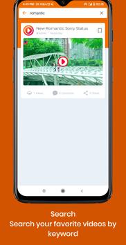 Small sized app with less data usage and low battery consumption, search your favourite videos, everyday new status, comment on videos, share directly, bookmark video to watch later.